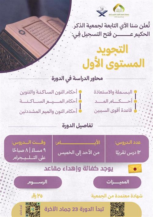 محاور الدراسة في الدورة البسملة والاستعاذة أحكام المد قاعدة أقوى السببين أحكام النون الساكنة والتنوين أحكام الميم الساكنة أحكام النون والميم المشددتين يوجد كفالة إهداء مقاعد برنامج الحلقات العامة مسار الضبط.